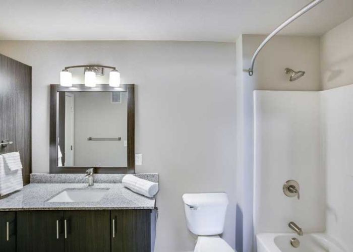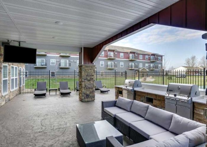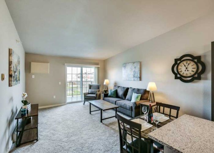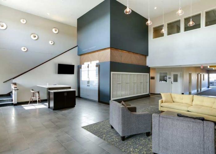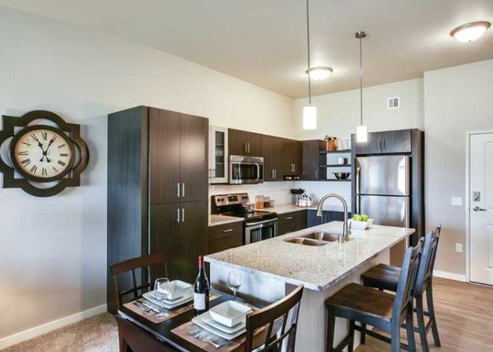 This apartment community features a variety of studio, one, two and three bedroom designs ranging in size from 550 square feet to 1,400 square feet. Amenities include washer and dryer, fully-equipped kitchen with stainless steel appliances, granite countertops, wood grain flooring and plush carpeting throughout. Apartments also include special touches such as walk in closets, spacious decks, raised panel doors, breakfast bars, maple cabinetry, and electronic locks. Other amenities include entertainment rooms, professional fitness center with commercial equipment, outdoor patio with grilling, indoor car/pet wash, dog run, and sport court. Attached heated parking and detached garages are also available.